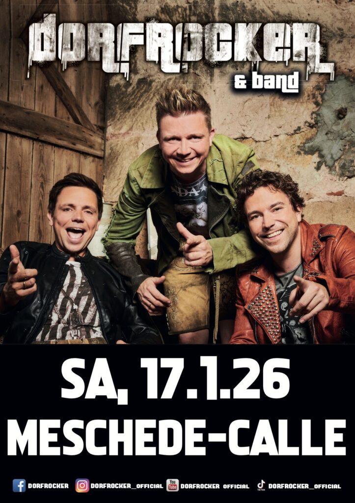 Am 17.01.2026 lädt die St. Severinus-Schützenbruderschaft Calle 1658 e.V. zur Dorfrocker & Band Party ein. Die Dorfrocker sind eine deutsche Musikgruppe aus dem unterfränkischen Dorf Kirchaich. Ihre Musik ist dem „Party-Rock“ zuzuordnen und enthält Stilelemente der volkstümlichen Musik, des Partyschlagers und der Country-Musik. Vor und nach der Band übernimmt ein örtlicher DJ für ein ununterbrochenes Partyerlebnis.